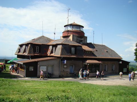 Chatu postavili turisté v roce 1923 podle návrhu Dušana Jurkoviče, nyní je po rekonstrukci a je krásná. Kousek od ní, na skále, je pamětní turistická zakládací deska. Za hezkého počasí jsme viděli na vodní nádrž Rozkoš, naše dočasné bydliště.