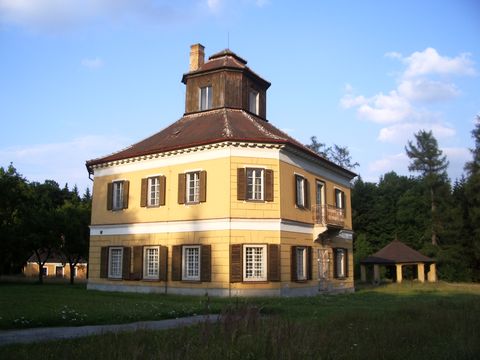 Stonařovskou alejí jsme vpodvečer dojeli k loveckému zámečku Aleje, který dali v letech 1815 – 1817 postavit v klasicistním stylu majitelé brtnického panství Collaltové. Zámeček leží uprostřed hlubokých jestřebských lesů ve výšce 638 m n. m. a vede k němu sedm alejí. Prostředí je tu krásné, ale je vidět, že s opravami už nelze moc dlouho otálet…