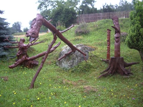 V Olší jsme si pohlédli oko v oko se pštrosem, který s pštrosicí (ale bez pštrosáčat) hlídkoval u plotu farmy, pozdravili jsme kostelík sv. Jáchyma v Dobré Vodě a už jsme byli v restauraci Na Kovárně v Mrákotíně a těšili se na smažák…Truchlivá pověst o dávném zdejším kováři stylově zapadá do dnešního dne – rozličné životní zvraty způsobily, že se jeho dvě děti ze dvou manželství setkaly a nalezly v sobě milostné zalíbení, osud ale nedopustil soužití nevlastních sourozenců a nešťastný kovář se musel dívat do hrobu obou svých dětí…