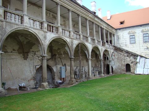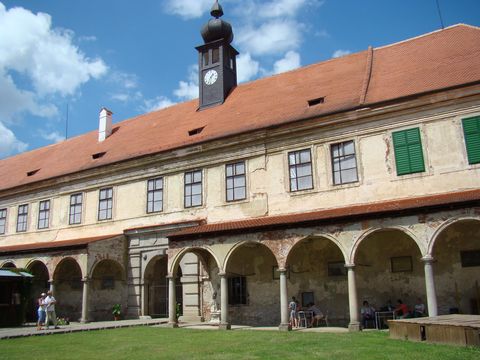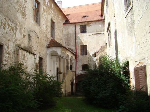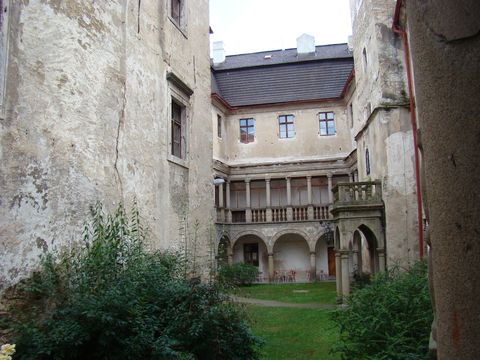 V neděli 3. 8. jsme si udělali velmi odpočinkový den ve stylu „normálních“ lidí. Měli jsme za sebou sobotní šichtu cykloznačkařskou a chtělo se nám odpočívat. Ačkoliv byl krásný den, možnost lehnout na zahradu nás nenapadla, a tak jsme si řekli, že konečně navštívíme zámek v Polici, kam se chystáme už pár let…Řeč je o Polici v okrese Třebíč, o zpřístupnění tamějšího zámku se myslím málo ví. A tak jsme s dobrou náladou a s Naší Věrou dojeli autem do obce Police, jejíž dominantou vždycky byl, a dosud je, místní zámek. Osídlení zde prý bylo už v 10. století, ze 14. století je písemná zpráva o opevněné tvrzi, která postupně nabývala s každým novým majitelem na významu, na začátku 16. století po renesanční přestavbě a dostavbě už hovoří prameny o zámku. Ten je pak téměř každé století přestavěn v duchu tehdejšího slohu, tzn., že ani barokní a rokokové úpravy zde nechybějí. Na konci 19. století získali zámek i přináležející velkostatek Vraždové z Kunvaldu a těm byl v roce 1945 zabaven, zařízení za směšný peníz rozprodáno. Starému baronu Vraždovi bylo pro jeho dobrotu a všeobecnou oblíbenost dovoleno zůstat v obci (asi aby si užil zkázu majetku). Hospodařilo zde pak několik podniků a ty se projevovaly způsobem nám dobře známým…V polovině devadesátých let převzala zámek do správy obec Police a ta se snaží zachránit co se dá.