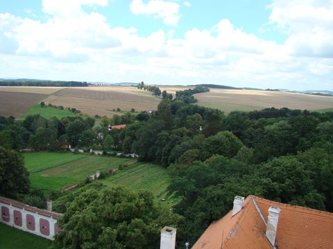 Vzala nás i na věž, odkud byl krásný pohled do okolní krajiny.