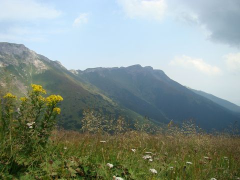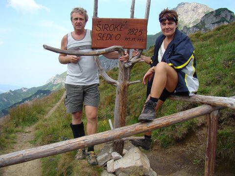 V Širokém sedle (1830 m) jsme propadli svým tělesným choutkám a k nádhernému rozhledu jsme si dopřáli i svačinku.