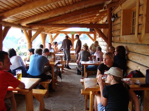 Chata Plesnivec je ve výšce 1290 m, zbývá nám sestoupit asi o 500 metrů níže do Tatranské Kotliny, proto jsme se na cestu řádně občerstvili.