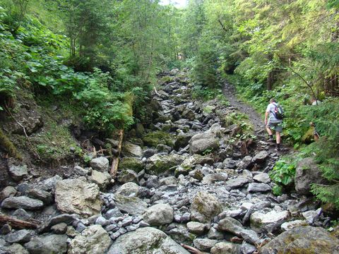 Na dohled je Bílé pleso, kde odbočíme z modré turistické značky na zelenou a ta nás dovede do Tatranské Kotliny k autobusu.