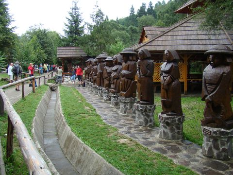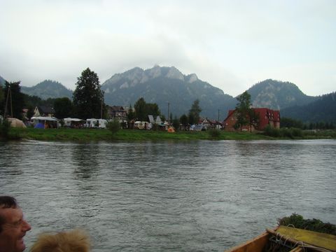 Během asi dvouhodinové desetikilometrové plavby se slunce schovalo, přišly mraky, pak přeháňky, pak hustý déšť, potom hustý vytrvalý déšť. V Lesnici jsme se rozhodli, že musíme změnit původní program a jít po nenáročné trase zpět do Kláštora. Měli jsme tedy dost času poslechnout si goralskou muziku, která koncertovala před hospodou a prohlédnout si různá lákadla pro turisty (koňské povozy, množství dřevěných soch).