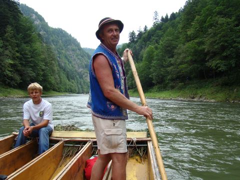 Před pár lety jsme cestu (je delší) po Dunajci podnikli s polskými voraři, ale osvědčené zábavní triky byly stejné: půjčit odvážlivcům kamizolku, klobouček a bidlo…