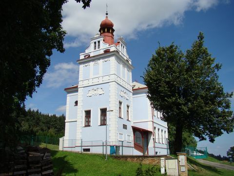 Zrekreováni duševně přišli jsme do restaurace v obci s nádherným názvem Věžovatá Pláně utěšit i tělo (klobásky od pořadatelů). Tady je místní „věžovaté“ stavení:
