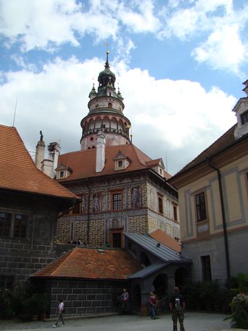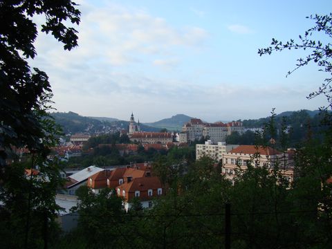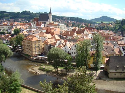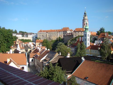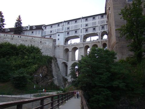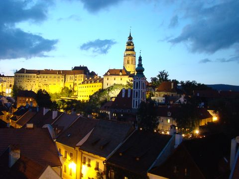 Psát něco o Českém Krumlově je nošení dříví do lesa, tak jen zmíním, že zámek je druhý největší v Česku (po Pražském hradě) a od roku 1992 je město, založené na počátku 13. století, v seznamu UNESCO. Nemám slova pro pocity, které zažíváte, stojíte-li na terase a díváte se na večerní Krumlov.