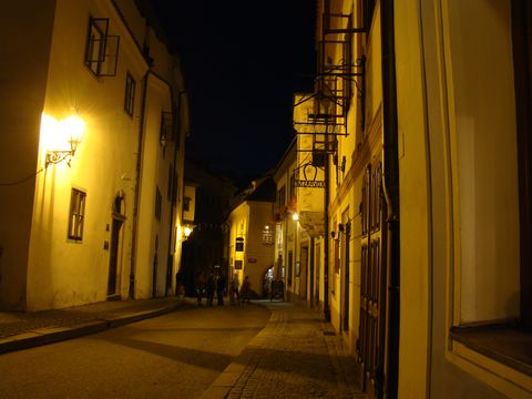 Ve stylové hospůdce v katakombách pod náměstím jsme ukončili večer, okouzlilo nás schodiště, jehož každé ze dvou ramen ústí na povrchu v úplně jiné lokalitě (což je i pro turisty-značkaře matoucí) a romantickými uličkami jsme mířili na náš vojenský kopec.