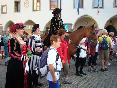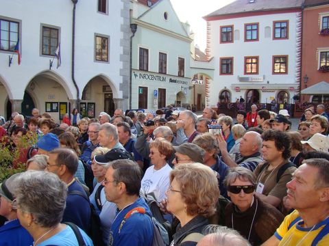 Všichni jsme mířili na hlavní krumlovské náměstí, kde byl 40. ročník putování za Pětilistou růží slavnostně zahájen.