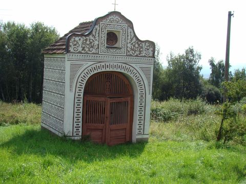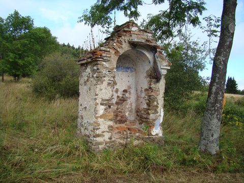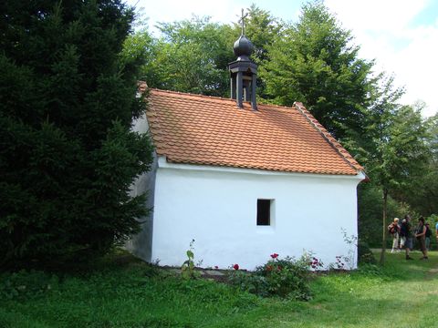 Autobusy nás pak zavezly na červenou TZ do vsi Omlenička, kde dnešní pochod začínal. Místo je známé kvůli lázním s železitou vodou, které zde byly založeny v polovině 17. století, ještě na začátku 20. století byly v provozu, ale nyní už je připomíná jen kaplička.