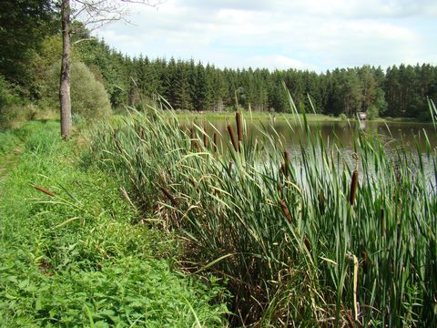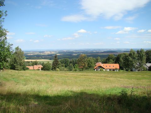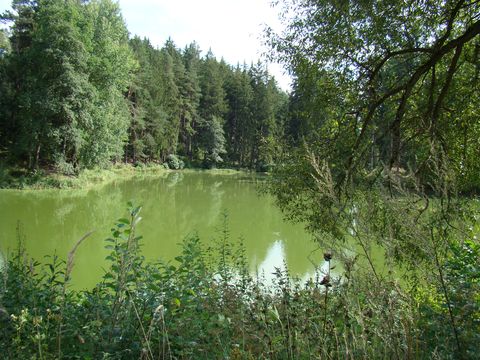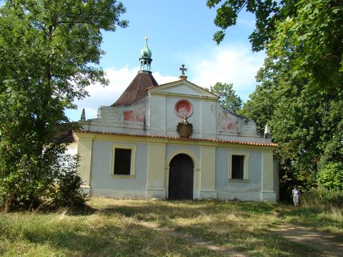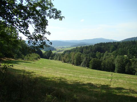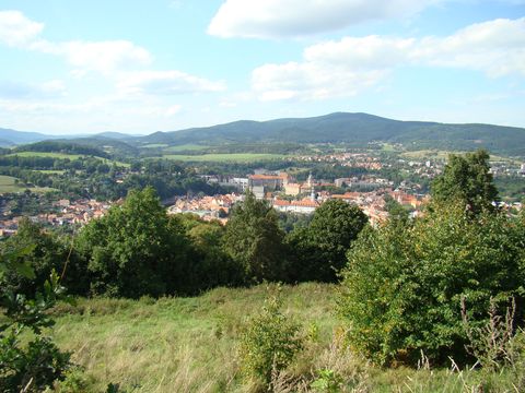 V blízkosti rybníků se zneklidňujícími jmény jsme chvíli klidně odpočívali, pak už nás cesta vedla přes Křížový vrch s kaplí, odkud byl nádherný pohled na město Krumlov i na hradbu kopců Blanského lesa s nejvyšší horou Kleť nad ním.