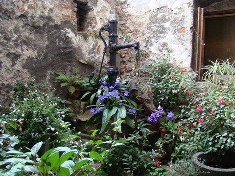 A pak už jsme honem spěchali, abychom stihli začátek plánované komentované vycházky po Krumlově, kterou vedl místní znalec. Mimo jiné jsme s ním viděli i toto zákoutí ve dvoře středověkého domu