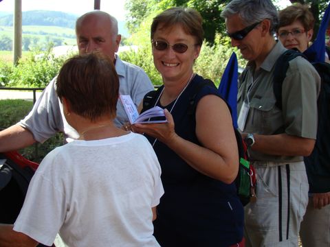 Prozradím vám, že ta droboučká paní v bílém tričku (s ruksakem) je ředitelka pochodu paní Libuše Kuchtová, Mistr turistiky.