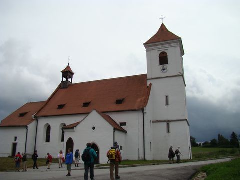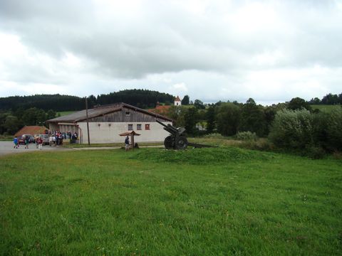 Po 18 km pochodu nevýraznou krajinou jsme došli do Polné na Šumavě a naskytl se nám tento obrázek: dělo, velká hospoda a do dálky svítící opravený kostel. Zašli jsme do hospody, pak do kostela, a protože už jsme měli dost pochodování, pro dnešek jsme dali turistice „padla“ a už jsme se těšili na večerní tancovačku.
