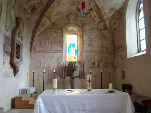 Na tomhle krásném kostele sv. Martina ze 13. století (malby jsou ze století 15.), který po roce 1990 vstal z mrtvých, je deska, ze které jsem vyčetla, že v roce 1946 bylo z farnosti vyhnáno 1450 Němců, kteří před několika lety zaplatili z peněžní sbírky podstatnou část oprav. To myslím byla hezká tečka za dnešní cestou.