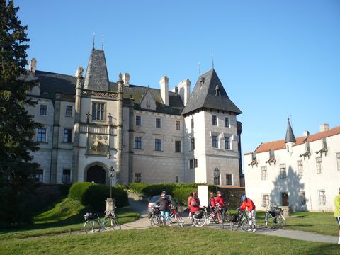 Naše první zastávka byla na zámku ve Žlebech, jen jsme se pokochali pohádkovými věžemi, prohlédli si nádvoří, obešli celý objekt a obdivovali krásu kamenných zdí a zídek.