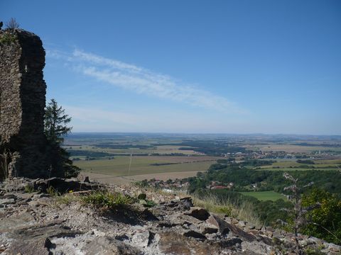 Vyfuněli jsme na blízký skalnatý ostroh, kde jsou zříceniny hradu, trochu jsme se tím zahřáli, ale nahoře na plošině jsme hledali závětří, odkud bychom se kochali krásným výhledem do krajiny.