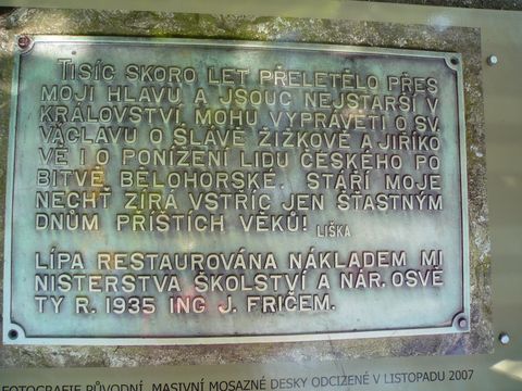 Povídá se, že prý byla zasazená v roce 1469 na oslavu vítězství Jiříka z Poděbrad nad Matyášem Korvínem…