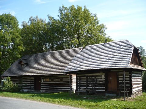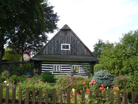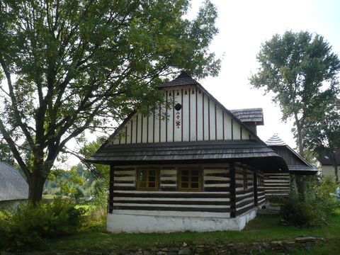 V Možděnici jsme si našli krásné místo na svačinku, v závětří a s výhledem na idylické staré dřevěné stavby, které mají vztah k předkům spisovatelky Heleny Šmahelové – ti zde v 17. a 18. století měli mlýn.