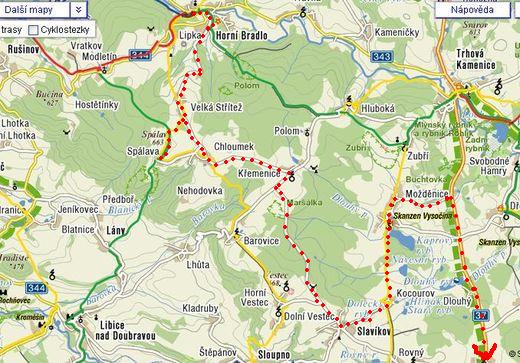 Trasa 2. dne: Horní Bradlo – Spálava – Chloumek – Slavíkov – Kocourov – Možděnice – Ždírec nad Doubravou – Havlíčkova Borová – Žižkovo Pole – Přibyslav – Polná = 62 km