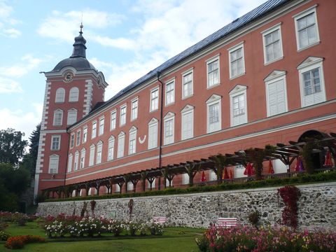 Zámek je krásně opravený, bylo tam několik výstav a ty jsme si prohlédli – městské muzeum, expozici kovaných železných prací, obrazy, fotografie, rozměrný sklářský objekt v zámeckém sklepení, hračky současné i historické.