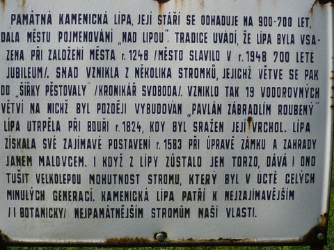 Možná, že si někdo chce připomenout její historii, tady je ofocená informační cedulička u stromu: