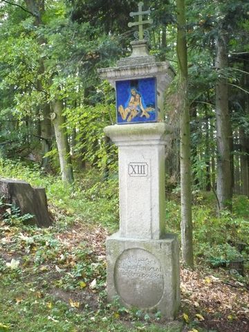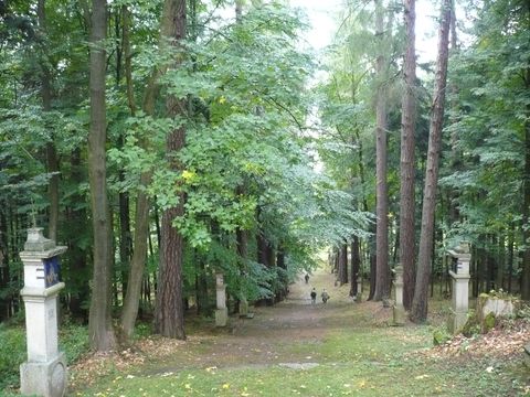 Na kopec ke kapli vede stromořadí s křížovou cestou z roku 1765.