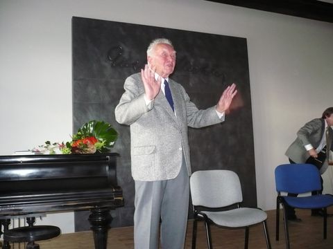 Zdeněk Mahler perlil od začátku besedy, roztomile přerušil Dr. Štilce, ředitele festivalu a iniciátora obnovení rodného domu GM, při jeho snaze představit ho návštěvníkům výčtem díla a zásluh a pak už zábavně, jak to jen on umí, na nás sypal informace. My jsme na něm viseli očima a naslouchali jsme bez dechu. Neúnavně rozdával svůj obrovský vědomostní kapitál, co chvíli pro něj charakteristicky zhluboka frkavě vydechoval, chrlil na nás fakta o GM, okouzlil nás svou osobností, a tak jsme se ani nechtěli smířit s koncem besedy.