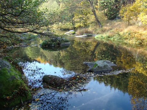 Tady se mi potvrzujeúžasné kouzlo řeky na podzim. Já mám zde dva extrémy. Kolem baráku je potůček skoro vyschlý