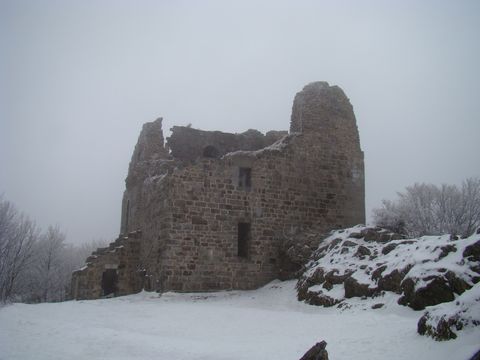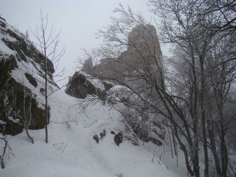 Vyjeli jsme po silničce č.198 směrem na Přimdu a málem jsme na zledovatělé cestě s téměř 200 metrovým převýšením uvázli. Ale Mirek je šikovný, tak vše zvládl. Dokonce jsme v nejvyšším bodě na Apolenském vrchu (téměř 700 m n.m.) zastavili, abychom si prohlédli zřícený kostel sv. Apoleny.