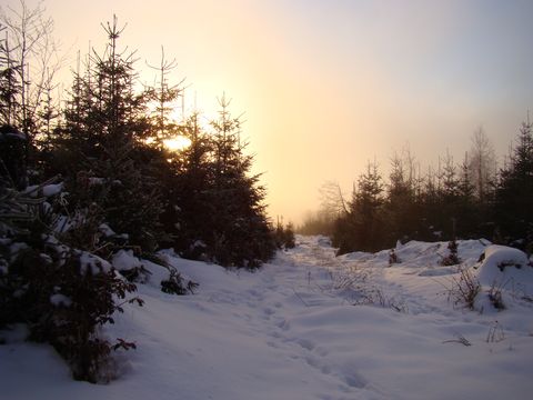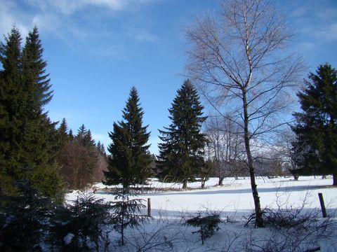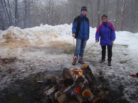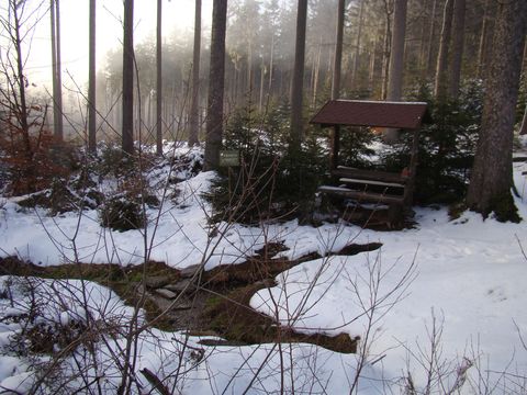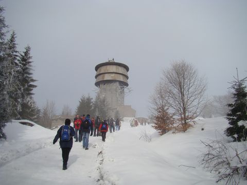 Přijetí v místním kulturním domě bylo vstřícné, odbavení pečlivé, odnesli jsme rychle naše zavazadla do třídy číslo 5 v místní škole, hodili na podlahu spacáky, hupli do auta, protože náš dnešní program byl ještě bohatý. Bylo po druhé hodině, když jsme vyjeli přes Smolov do Rybníka a Závisti, abychom mohli zajít k prameni Radbuzy. Věřte či ne, ale počasí se začalo vylepšovat, mlhou proráželo slunko a asi dvoukilometrová cesta lesem a sněhem do výšky 689 m n.m. k prameni řeky byla za odměnu – tak hezky tam bylo.