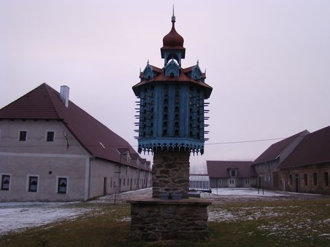 A to už jsme vlastně byli v cíli naší dnešní cesty, na bývalém panství Újezd Svatého Kříže, kam všechna další místa, která v příštích dnech navštívíme, včetně Bělé, dříve patřila. Významnými majiteli (až do roku 1945) byli Kocové z Dobrše, kteří zkulturnili zdejší kraj a výsledky jejich snažení můžeme ještě leckde zahlédnout, ačkoliv mnohé bylo poničeno, když se po válce tento kraj u naší západní hranice stal po odsunu německého obyvatelstva vojenským prostorem. Ves dostala jméno podle kostela Nalezení Svatého Kříže, založeného mnichy snad už ve 12. století (při hloubení základů prý našli železný kříž).