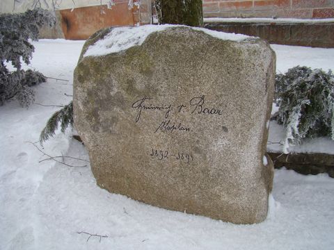 Původní Baarův pomník byl zničený, proto nyní vytesali jeho podpis do žulového kamene z Českého lesa a umístili před kostel.