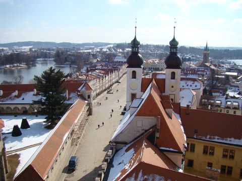 Ačkoliv napadl před pár dny zase sníh, dnešní sobota byla zubatě slunečná a my jsme si užívali rozhledů na město, které má pro svou krásu tolik obdivných přezdívek, že by z toho páni z Hradce, kteří Telč už od 14. století vlastnili, měli radost.