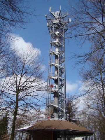 Už na konci 19. století tu byla dřevěná rozhledna, provozovatelem té dnešní je KČT Telč, celková výška je 36 m, ochoz je ve výšce 31 metr.