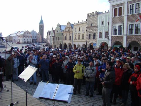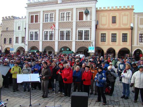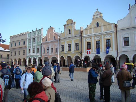 Už mnohokrát jsem řekla i napsala, že do Telče jedeme vždycky rádi. V sobotu se nás tam sešlo asi 700, abychom slavnostně přivítali jaro, uviděli se, popovídali a prošli okolí Telče i některé historické objekty, do nichž nám pořadatelé umožnili přístup. Turisté z mateřského Čeřínku jeli vlakem, ten ovšem přijede do Telče až v 9 hodin a to už právě na náměstí začínal slavnostní ceremoniál. Jeli jsme proto autem, abychom si užili setkávání a swingovou muziku, která vyhrávala na náměstí už od rána.