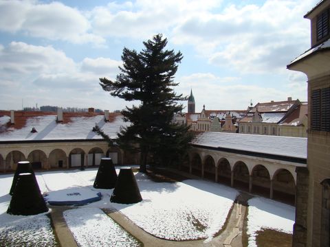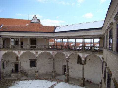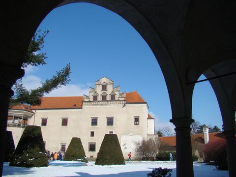 Nyní pohledy z arkád, kterými byly propojeny zámecké budovy (zábradlí je původní).