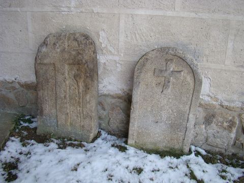 v zámecké zahradě u zdi kaple jsou dva originály smírčích kamenů