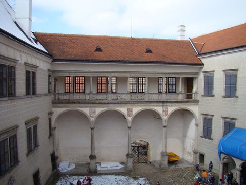 Na tomto vnitřním nádvoří se konají koncerty Prázdnin v Telči, je nutné zúčastnit se některého ve vlahém letním večeru, abyste pochopili náš milostný vztah k Telči.