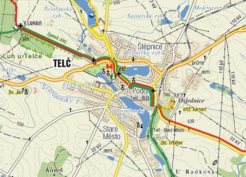 My jsme ale měli před sebou ještě jeden pohled z výšky a chutě jsme vyrazili na další štaci. Pro orientaci vám nabízím mapku Telče a blízkého okolí.