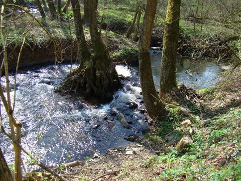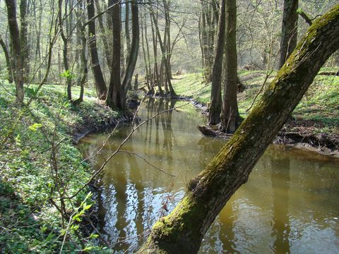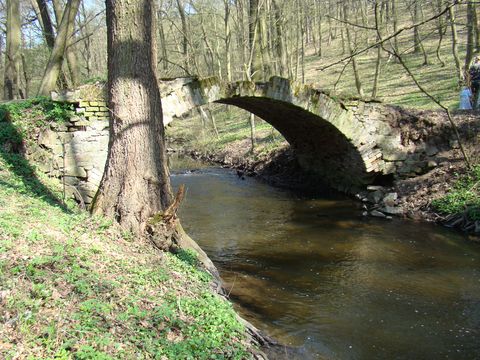 Z nádraží jsme se vydali po modré TZ (bylo nás 26, ale šli jsme po skupinkách), sestupovali jsme do údolí řeky Bobravy, louky byly zalité sluncem, stromy rozkvetlé. Říčka vtéká za Rosicemi u Tetčic do lesů (převážně bukových), vytváří krásná zákoutí, vyskytuje se zde mnoho chráněných druhů zvířat i rostlin, ale málo trvale obydlených lidských sídel, takže pro udržení dobrého stavu území zde byl vyhlášen přírodní park, který zasahuje až do blízkosti Střelic. V minulosti bylo na Bobravě několik mlýnů, dnes jsou opuštěné či v troskách. První z nich, Radostický, na mě žádný valný dojem neudělal, což se o řece Bobravě rozhodně říci nedá. Klikatila se romanticky, hned byla čiperná, pak zase klidně nechala sluneční paprsky nahlédnout až ke dnu.