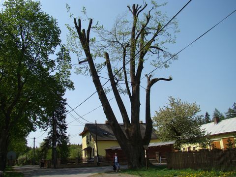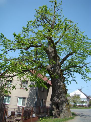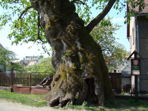 Dobře si uvědomujeme, že obrázek lípy je nedokonalý, sami vidíte, že s focením je problém – strom je ve staré husté zástavbě těsně u silnice, v zatáčce. Na vlastní oči ale uvidíte, že lípa je nádherná a má se k světu, ačkoliv její 15 metrů vysoký a 650 cm mocný kmen je dutý.