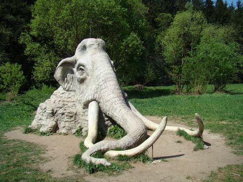 Přes Najdek jsme dojeli do Šlakhamrů, zaparkovali a pěšky se vydali až Na konec světa (pod Peperkem). Voják v pohraniční budce byl zcepenělý stejně jako při naší poslední návštěvě před rokem a nic nenamítal proti tomu, abychom se volně pohybovali, zamířili jsme tedy po ČTZ k Rozštípené skále, pod ní jsme přešli potok a ocitli jsme se tváří v tvář (v chobot a kly) Mamutovi.