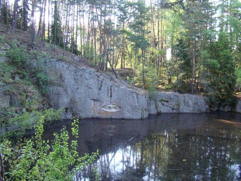 V Lipnici jsme se po krátké prohlídce města vydali autem směrem na Ledeč, v místě, kde na silnici přichází ZTZ od Melechova, jsme auto zaparkovali a pěšky jsme se po ní vydali k lipnickým lomům, aby si Naše Věra mohla prohlídnout třetí zdejší výtvor sochaře Radomíra Dvořáka, totiž Zlatý voči. Ucho a Ústa už s námi navštívila, toužila vidět Zlaté oči, asi 2 km vzdálené.