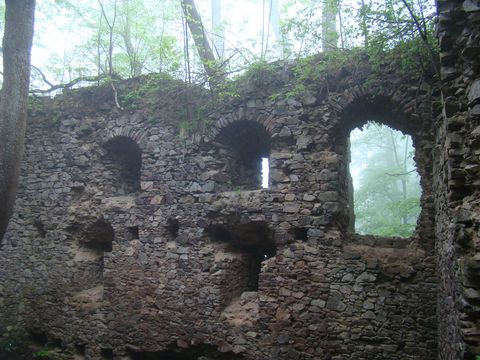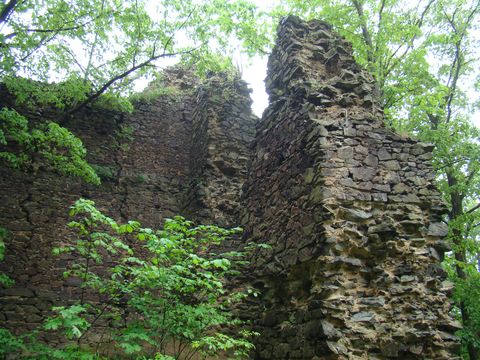 My jsme se vydali jen 1 km po ČTZ na nejrozsáhlejší hradní zříceninu v západních Čechách, na Nový Herštejn. Od roku 1933 je kopec se zbytky hradu a opevněním prohlášen přírodní rezervací, krása a opuštěnost místa byla podtržena mlhou, která ovíjela hradní zdi i Panenskou věž. Trochu bulváru: v roce 1475 při obléhání hradu Bavory zazdil Jan z Herštejna kvůli bezpečnosti všechny poklady a své tři dcery do hradní věže. Osádka hradu včetně majitele byla ovšem pobita a vítězní Bavorové nevěděli, co je ukryto za zdí… Od té doby se věži říká Panenská.