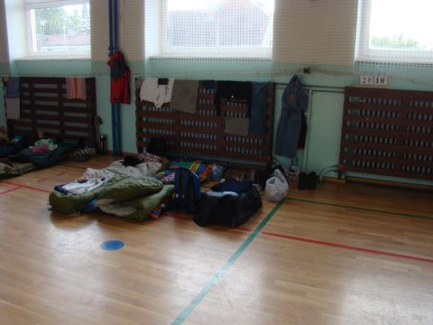 Nad naším spánkem na lehátku ve čtyřhvězdičkové tělocvičně bděli asi střídavě patroni-poutníci sv. Jakub se sv. Vojtěchem, protože jsme ráno byli svěží a nebesky naladění (nebo to bylo slivovičkou?).
