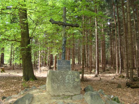 Karel Gangloff (zemřel 1879) byl významný lesní odborník, technicky zdatný natolik, že se mu pro jeho četné vynálezy v oblasti lesnictví přezdívalo „český Archimedes“; vynalezl například stroje na výrobu šindele, na měření dřevní hmoty a jiné, které se doposud užívají! Kříž dal postavit pod Třemšínem na svém oblíbeném odpočinkovém místě.