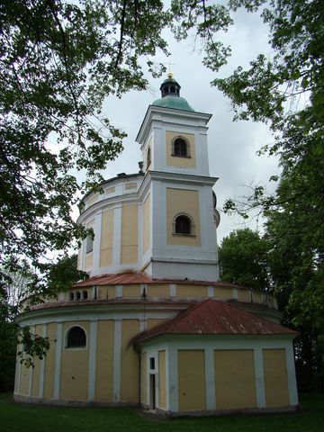 Kousek odtud je poutní barokní chrám podle plánů Dienzenhoferových, postavený na místě, kde prý stával světcův rodný dům.