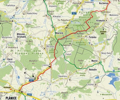 Musím říct, že po tolika výletech do historie jsem přivítala putování a meditaci v přírodě. Na tomto úseku jsme šli červeně značenou Křižíkovou cestou z Kozlovic do Lovčic, přírodním parkem Kakov a přes Plánický hřeben.